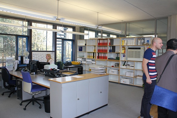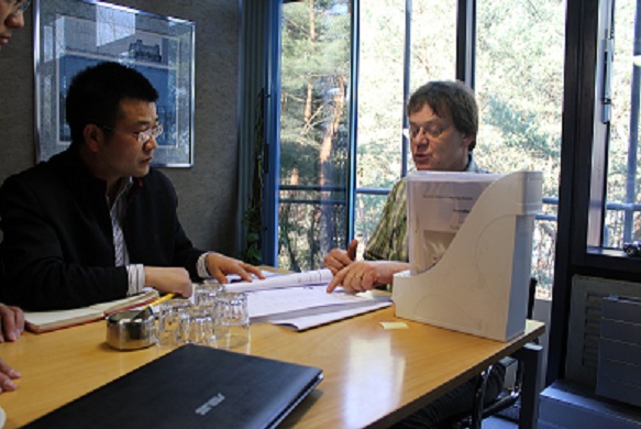 楊總在與技術(shù)總工進(jìn)行技術(shù)交流(楊總:左一)楊總在與項目經(jīng)理詢問項目進(jìn)度 參觀賀廷根公司辦公環(huán)境